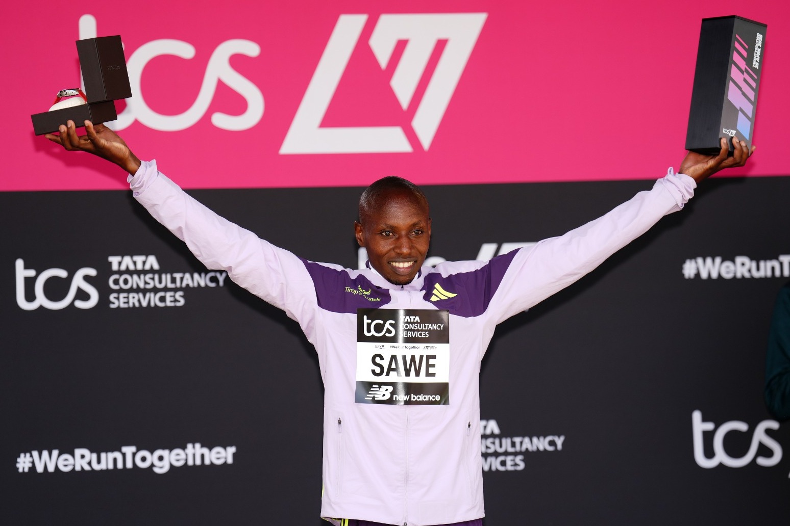 Sebastian Sawe retains his title in a world record time of 1:59:30.